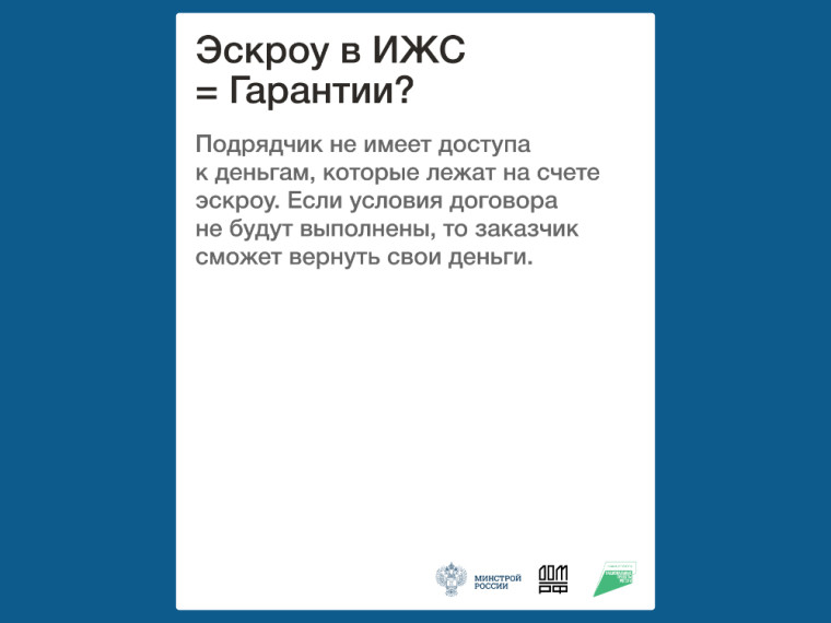 Счета эскроу при строительстве индивидуальных жилых домов Министерство строительства и жилищно-коммунального хозяйства Российской Федерации информирует о возможности применения механизма счетов эскроу при строительстве индивидуальных жилых домов.